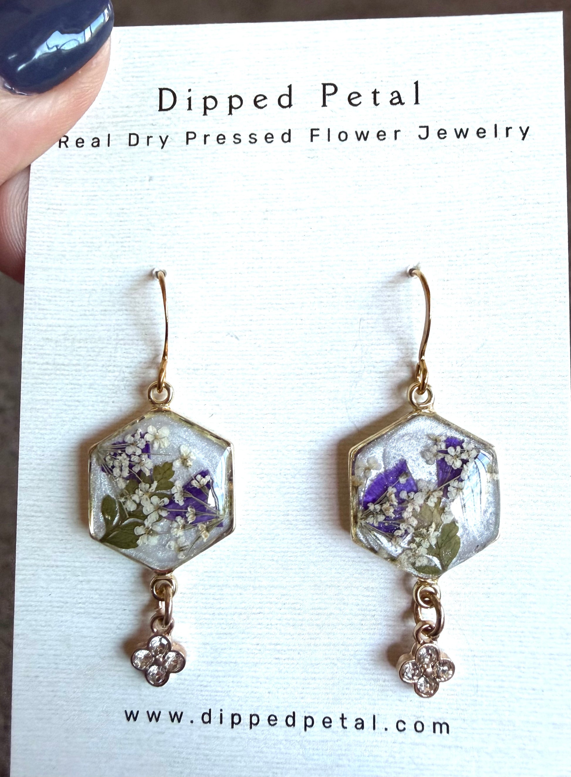 Each one of these earrings is one of kind and unique, as no two flowers look exactly the same. Flowers, Leaves and all plants really grow into different shapes and sizes. And while the specific species of a plant determines there size potential, each one is uniquely different from the other. ***
