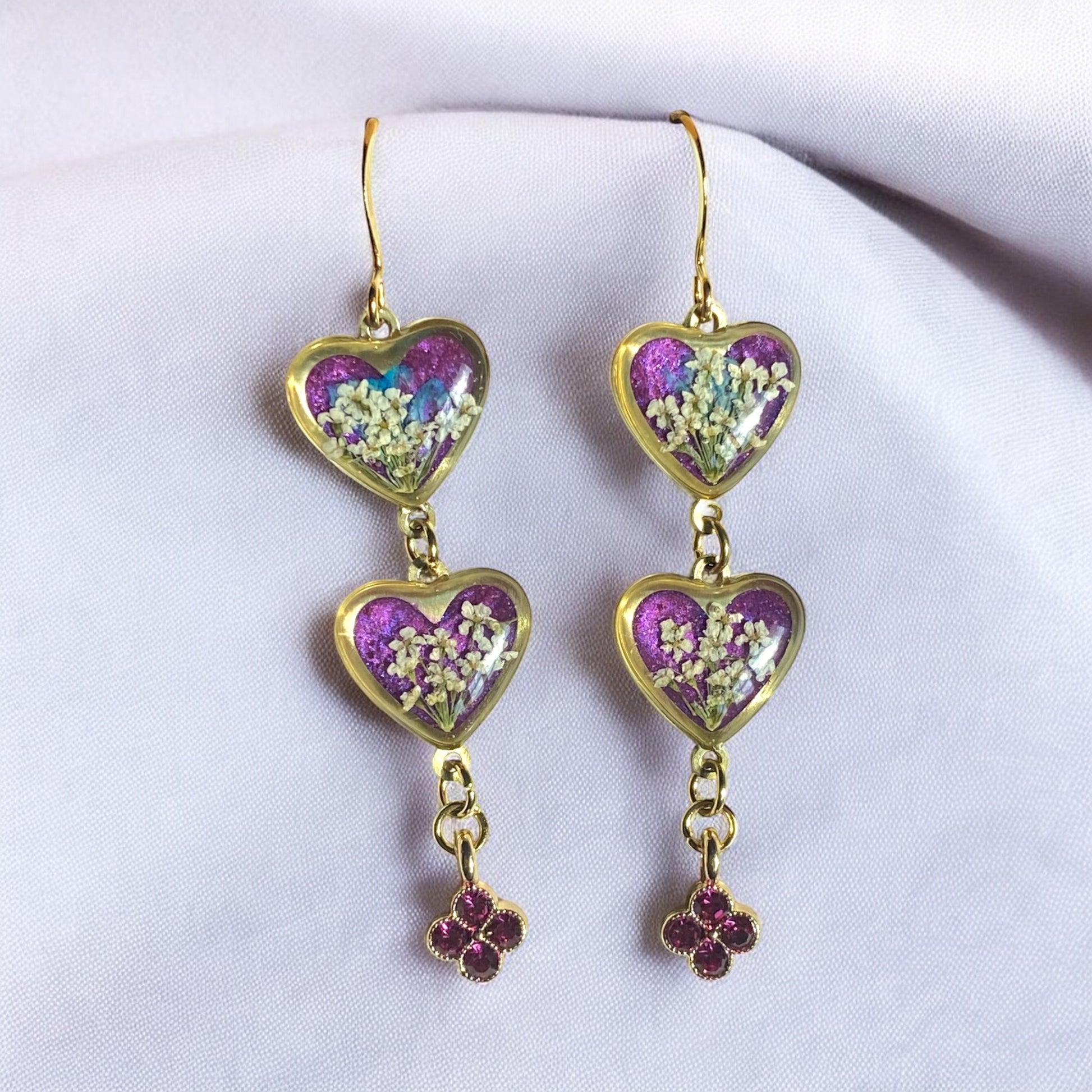 Each one of these earrings is one of kind and unique, as no two flowers look exactly the same. Flowers, Leaves and all plants really grow into different shapes and sizes. And while the specific species of a plant determines there size potential, each one is uniquely different from the other. ***