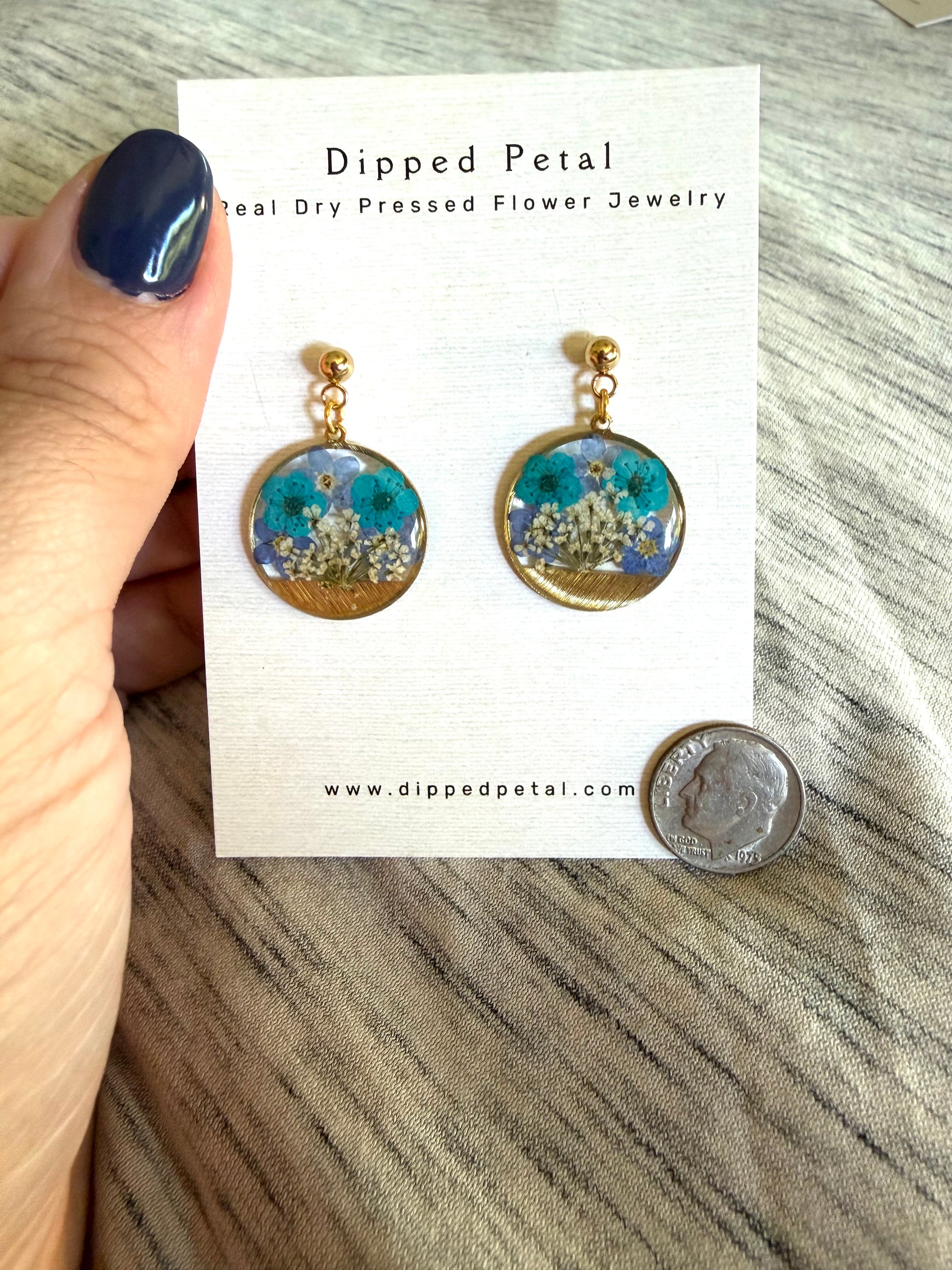 Each one of these earrings is one of kind and unique, as no two flowers look exactly the same. Flowers, Leaves and all plants really grow into different shapes and sizes. And while the specific species of a plant determines there size potential, each one is uniquely different from the other. ***