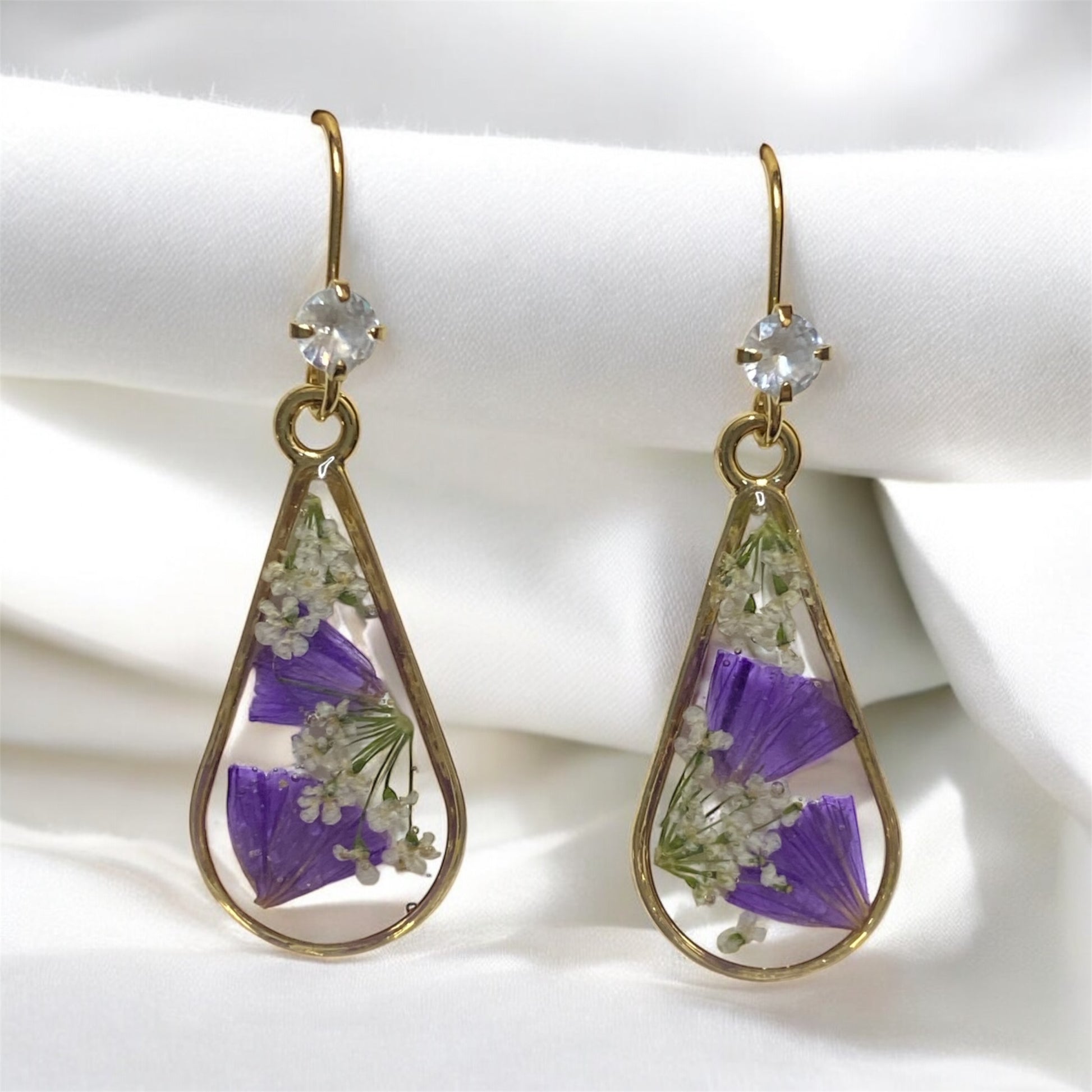 Each one of these earrings is one of kind and unique, as no two flowers look exactly the same. Flowers, Leaves and all plants really grow into different shapes and sizes. And while the specific species of a plant determines there size potential, each one is uniquely different from the other. ***