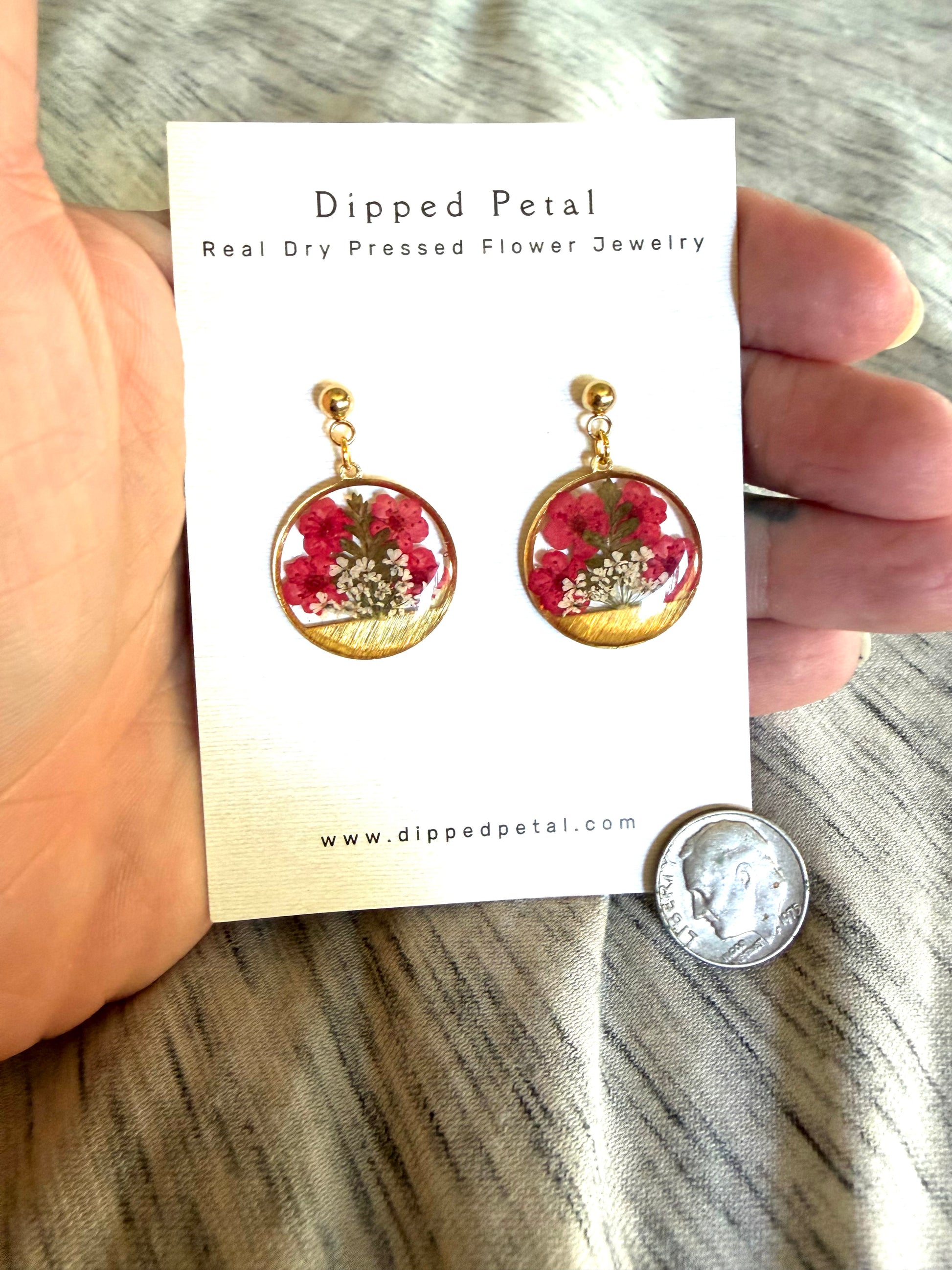 Each one of these earrings is one of kind and unique, as no two flowers look exactly the same. Flowers, Leaves and all plants really grow into different shapes and sizes. And while the specific species of a plant determines there size potential, each one is uniquely different from the other. ***