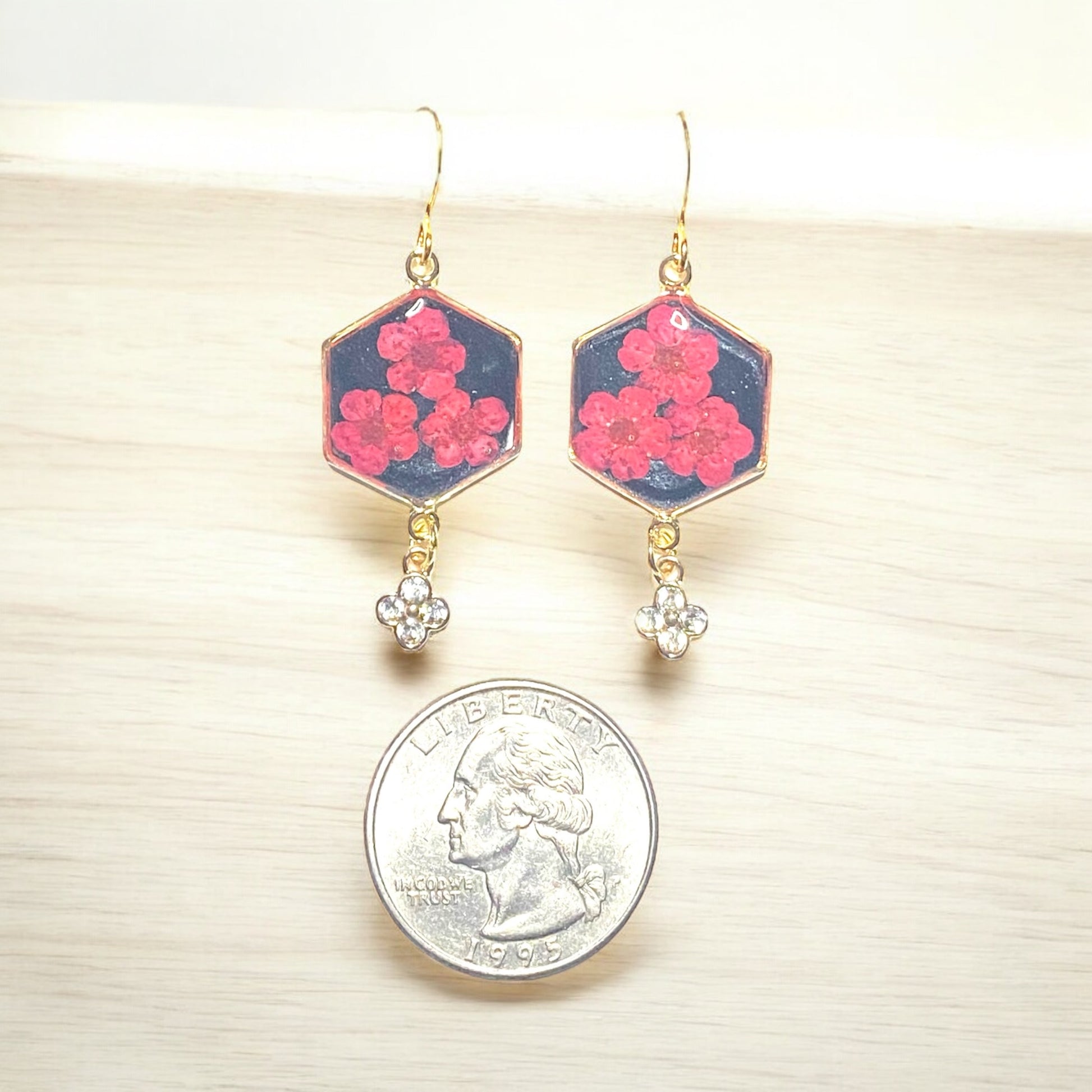Each one of these earrings is one of kind and unique, as no two flowers look exactly the same. Flowers, Leaves and all plants really grow into different shapes and sizes. And while the specific species of a plant determines there size potential, each one is uniquely different from the other. ***